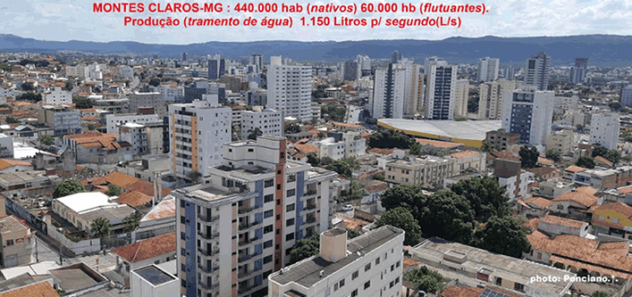 A cidade de Montes Claros possui 440 mil habitantes nativos e 60 mil flutuantes, sendo abastecida por seis captações principais: o Rio São Francisco (em Ibiaí-MG), a Barragem de Juramento, a captação superficial do Rio Pacuí (em Coração de Jesus), a Lapa Grande — que contribui com 11% do abastecimento —, o Rebentão dos Ferros (Nova Esperança) e a Barragem dos Porcos (KM 6,5 - BR 365). Além dessas fontes, o sistema conta com uma vasta bateria de poços artesianos profundos.